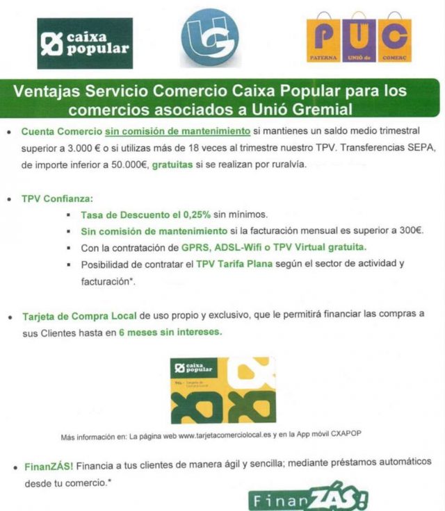 Este año hemos vuelto a renovar el convenio con la Caixa Popular para que todos nuestros asociados puedan tener todos los beneficios que ofrece esta entidad.